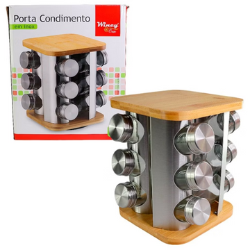 Porta temperos condimentos giratório 360° inox/bambu