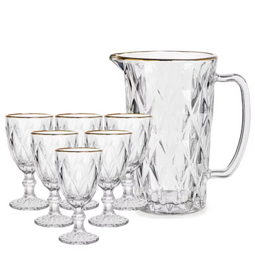 Conjunto jarra + 6 taças borda dourada